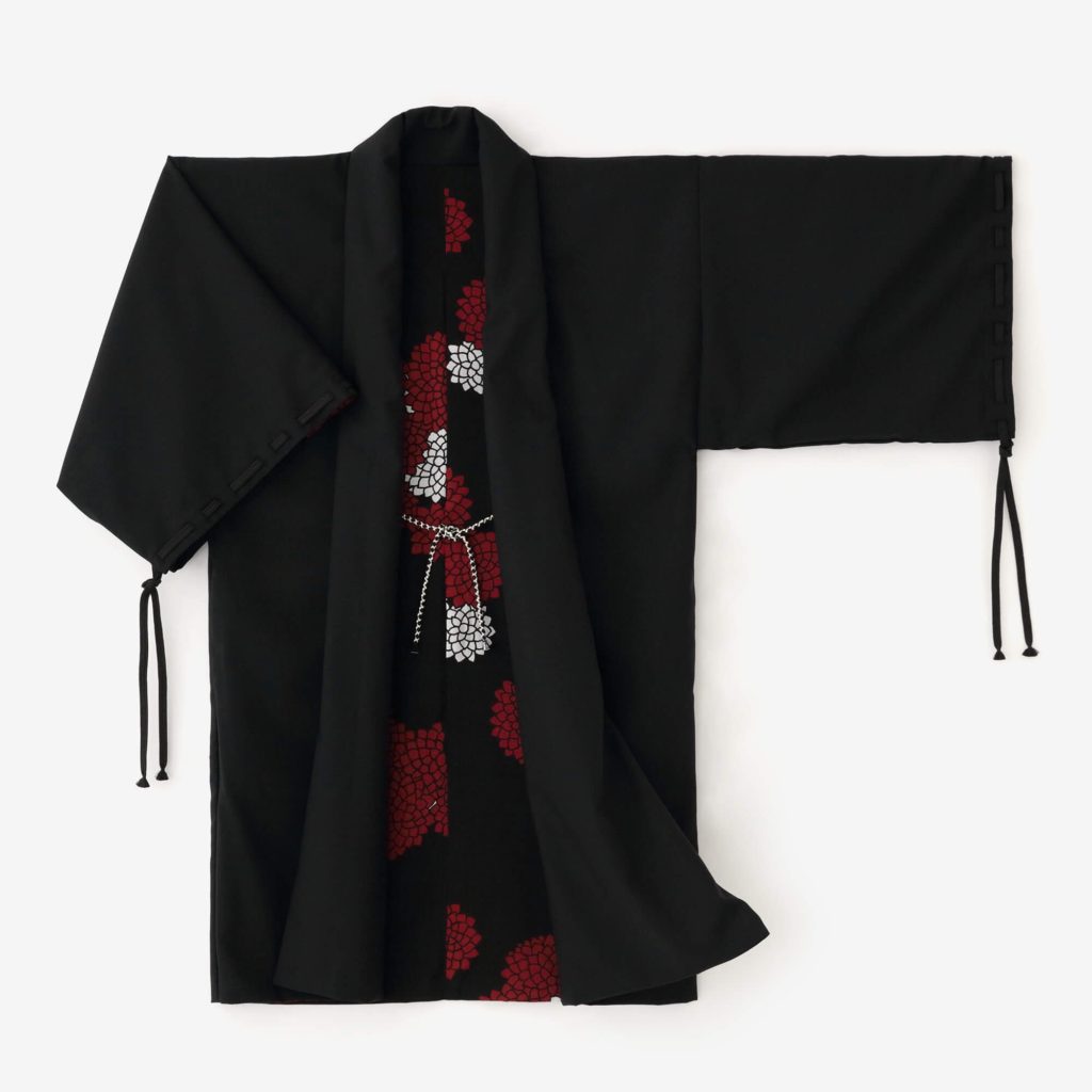 SOU・SOU:宮中袖 袷 モスリン/濡羽色×雲間に菊