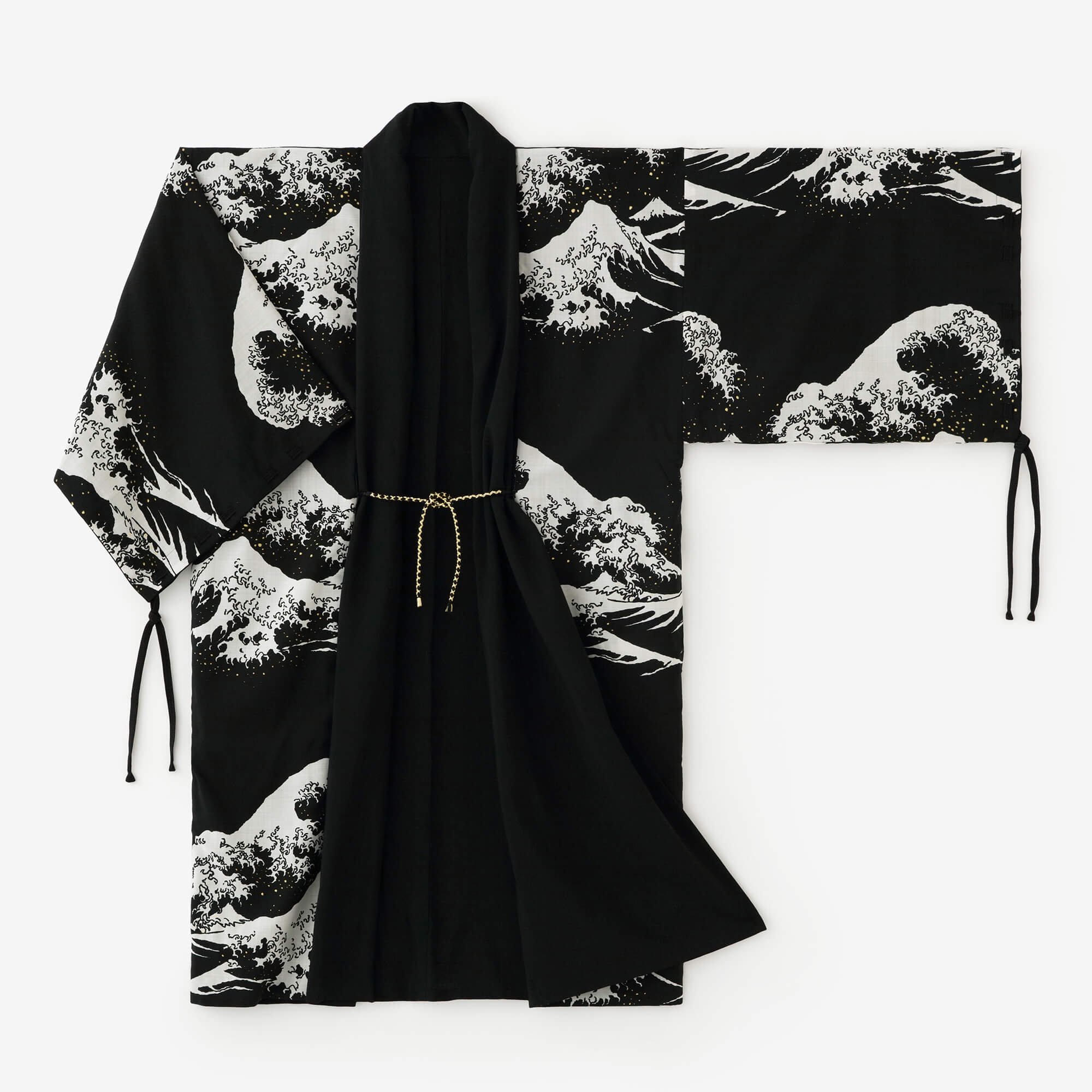 SOU・SOU:宮中袖 袷 モスリン/濡羽色×北斎 神奈川沖浪裏 写し