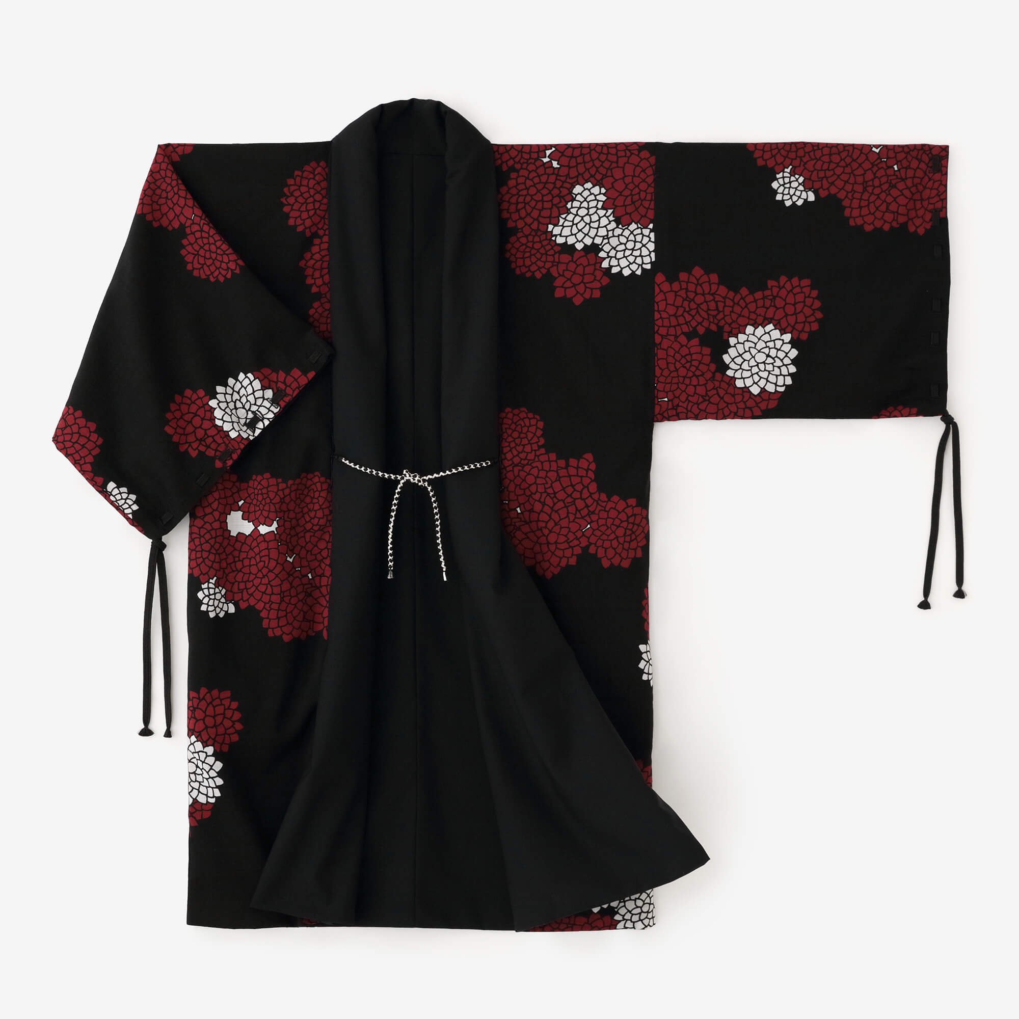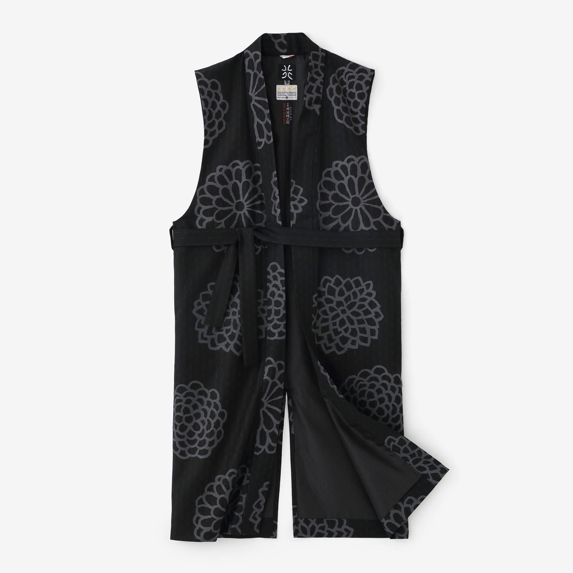 SOU・SOU:宮中袖 袷 モスリン/濡羽色×雲間に菊