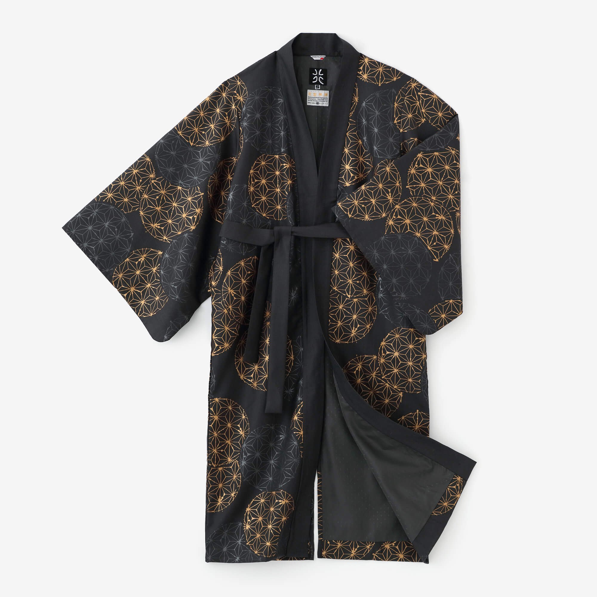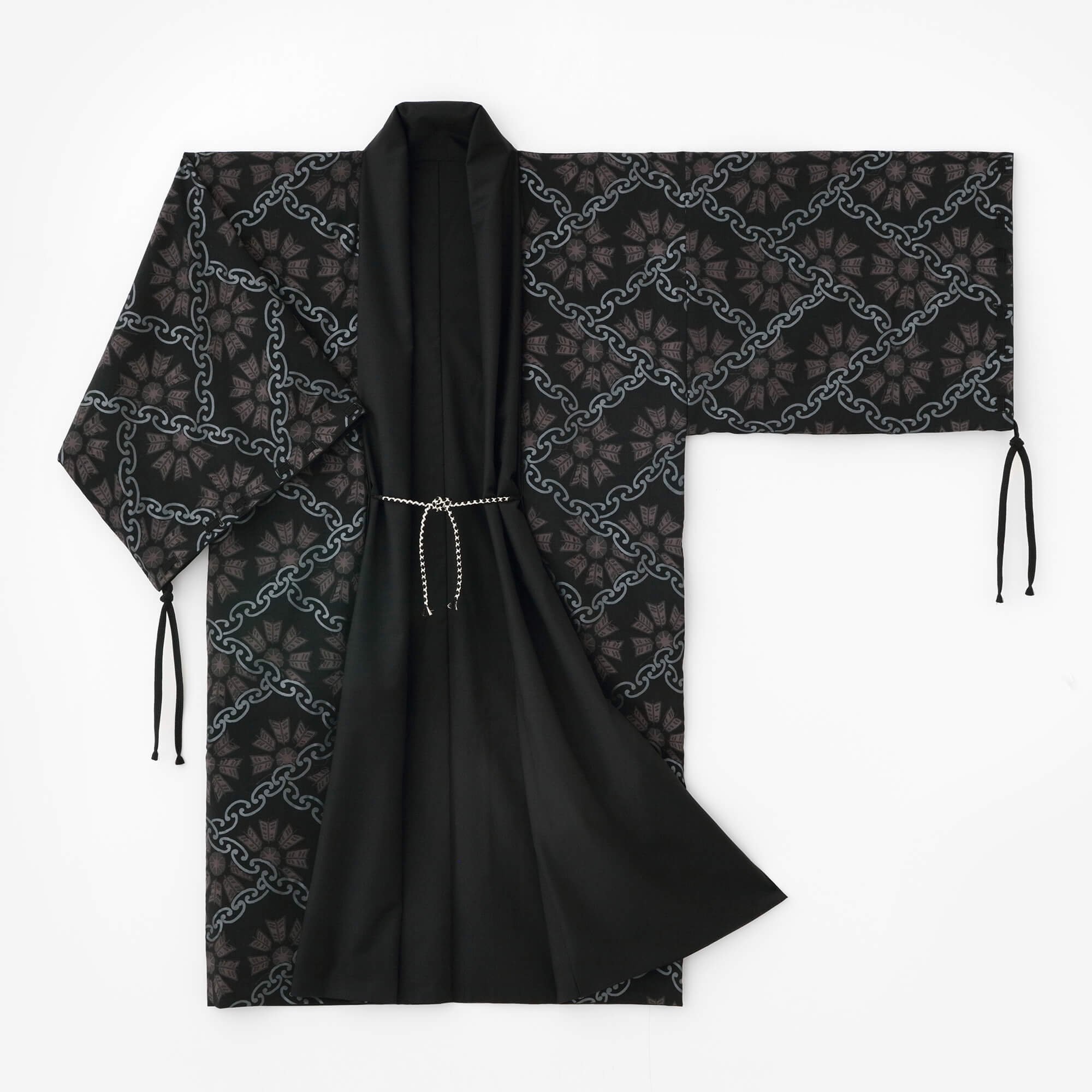 SOU・SOU:宮中袖 袷 梳毛×モスリン/濡羽色×環繋ぎ矢車紋 写し