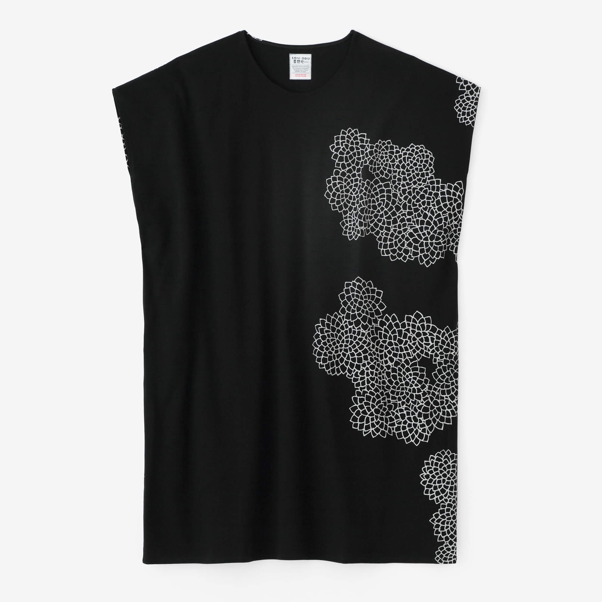 SOU・SOU:長方形衣 肩線 両面編/雲間に菊と余白 濡羽色