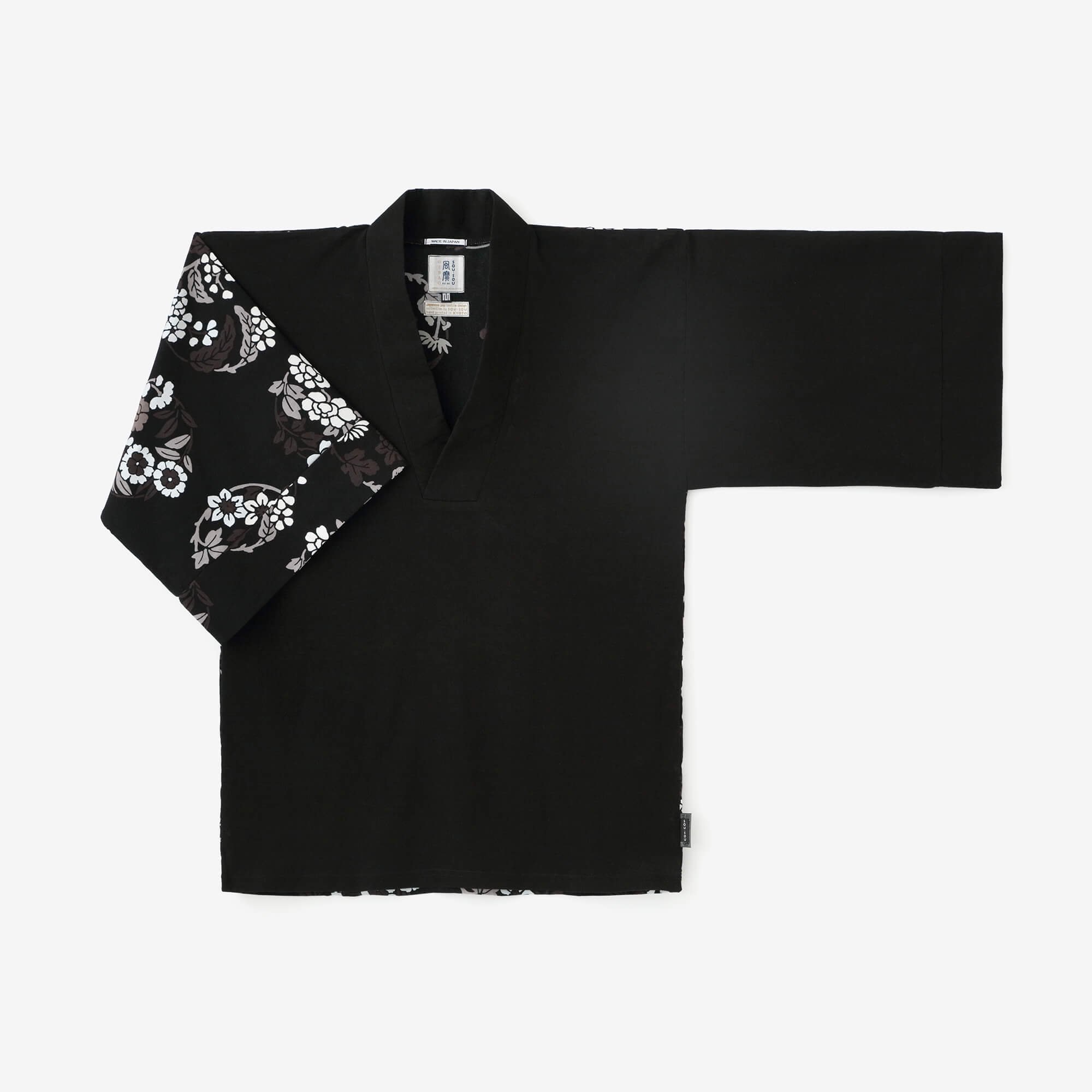 SOU・SOU:風靡 上 片身替わり 高島縮 40/40/濡羽色×花丸文様